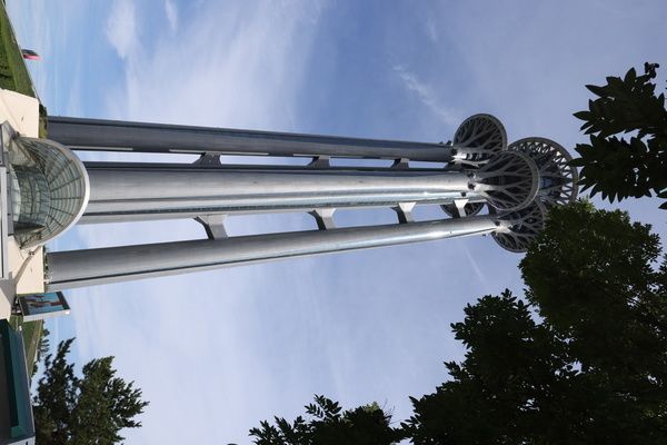 在246.8米高的北京奥林匹克塔1号塔塔顶平台鸟瞰北京全景,首都城市建设高质量发展的生动图景尽收眼底。北京奥林匹克塔坐落于城市中轴线之上,以“生命之树”为设计理念,由5个高低不同的塔身组成,塔顶如水平伸展的树冠,在空中似合似分,寓意着奥运精神的生生不息。“作为超尺度建筑,为解决结构上晃动问题,塔之间有4层结构连接体形成相互支撑,契合了手手相连、团结共进的奥运精神”,中国院本土设计研究中心主任建筑师叶水清向大家介绍道。