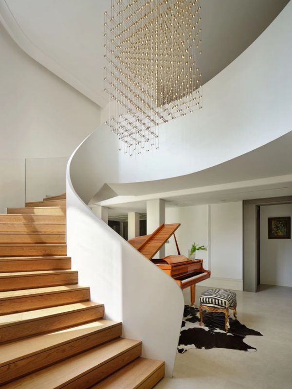 在别墅住宅中,楼梯不单承载的是连接空间的功能,在我们看来它更像是一座存在于室内空间的建筑艺术品。无需华丽和绚烂的材质去刻意装饰,也可令其成为视觉焦点。木制的踏板,即便赤足行走也不会感到冰冷,舒适、自由、随性,居家感十足。