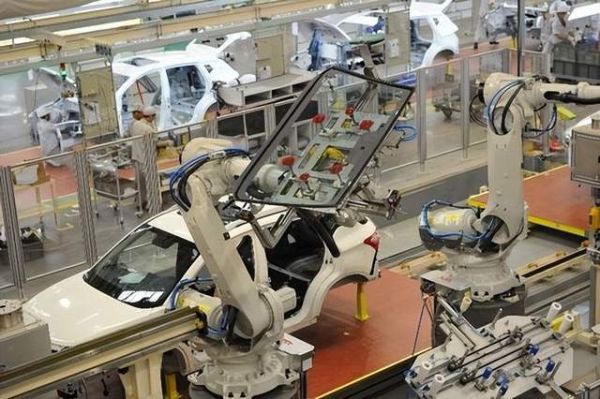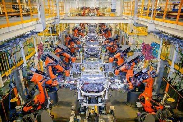 焊装大多都由机器人进行组装,传祺整车制造焊装厂共拥有215台机器人,焊接自动化率高达64%。自动线采用自适应焊接技术,通过MES(制造执行系统)与RFID(无线射频识别系统)互联,实现了车型、配置的自动识别,既保证品质又提高了产量。