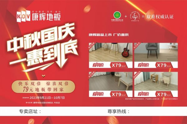 作为拥有百年地板历史的康辉地板,这些年不仅引领着地板行业的发展,在产品上也屡屡给人惊喜,眼看马上要迎来中秋国庆假期,今年9月21日-10月7日康辉地板携新品重磅出击,开启了火热的促销玩法!