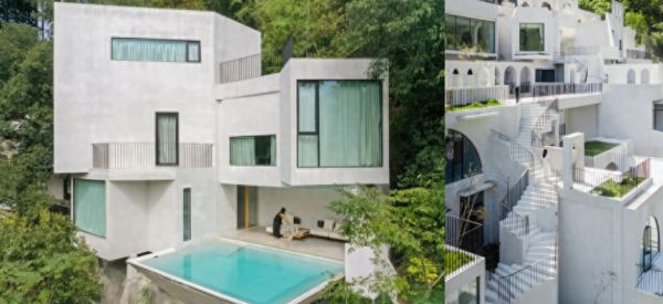 在一路来的自然风光与畲族风情,山转水洄之侧,庞大的白色建筑群体豁然显现,这便是国内首座沉浸式矿山景观群落——堪称“悬崖上的天空之城”。