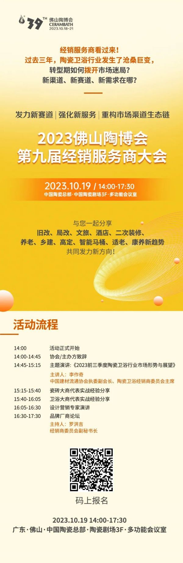 助你赢在起跑线!10月19日陶瓷卫浴行业大咖云集经销服务商大会指点迷津,快来报名!