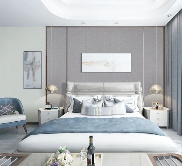 如果房间里拥有充沛的采光与日照,墙布完全可以挑选偏冷色系的,稍微中和,质感更佳。但最好不要选用大量反光的图案,会非常地刺眼。如果房间里光线较弱的话可以选用暖色系的墙布,如米黄色、淡粉色、咖啡色等。