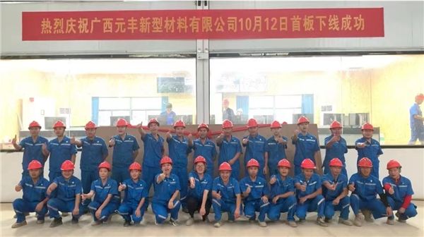 热烈祝贺广西元丰新型材料有限公司首板下线成功