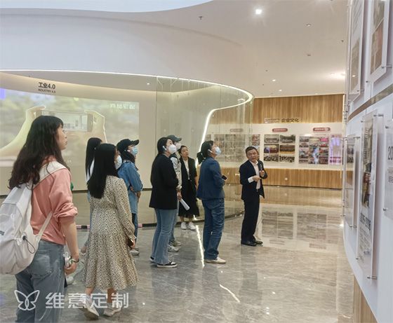 在维尚五厂,采访团一行先后参观维尚五厂展厅和智能制造车间。黎干总经理详细向大家介绍了维尚发展历程、个性化定制模式、BIM整装及数智化技术应用情况。