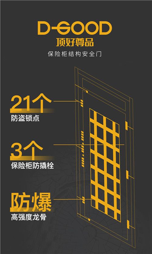 今年4月顶好尊品正式发布“第二代保险柜结构”安全门,并由国家知识产权局颁发了“保险柜结构”专利证书,顶好真正将产品的差异化和用户价值做到了极致!“保险柜结构”安全门,远超国家甲级标准,不止是防暴力开启时间,在锁点上也是比国家甲级标准多出5个,并且多配置了3个保险柜防撬栓以及防暴力高强度龙骨。