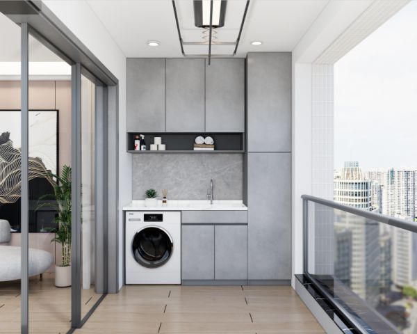 众所周知,阳台是一个会被日晒雨淋的地方,所以定制阳台柜时,选择板材一方面要考虑防晒,一方面还要考虑防潮。