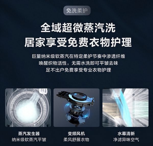 更令人惊叹的是,格力如初拥有全域超微蒸汽洗技术。这是一项不用水洗就能实现衣物平皱去味的技术。通过蒸汽发生器产生纳米级软蒸汽,它能渗透纤维,彻底除去衣物上的皱褶和异味,让你的衣物焕然一新,仿佛刚刚从专业洗衣店取回一样。