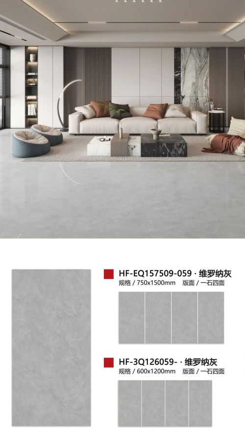 维罗纳灰,沉稳且自带高级感的灰色调与石纹的碰撞,表面浅浅浮动白色纹理,灵动而素雅,轻松营造富有艺术韵味的居住空间。