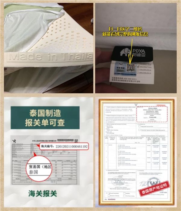 提醒一下,大家在购买天然乳胶产品时要先检查有没有防伪钢印、泰国进口报关单、泰国原产地证明、CCIC溯源码这些,缺少其中一个可以直接pass了。