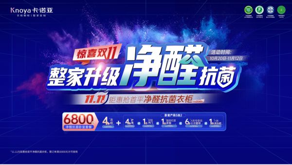 卡诺亚积极响应国家促进家居消费的号召,在金秋家居消费旺季,于全国各地盛大开启健康家居惠民风暴,重磅推出11.11元钜惠抢首平净醛抗菌衣柜,只要订单满30000元即免费送价值2048元/㎡的净醛抗菌衣柜,以一场无前例的惠民盛宴,让健康高品质家居更广泛地走进千家万户,助力更多国人实现美好人居生活。