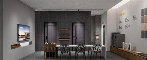 这次的标准店整体采用回字型动线,参观简单清晰,形成人流回路;商业展示面佳,不存在理论上的商业死角。用全开放式与半开放式的设计形成两条路线,分多个区域展示不同系列的产品,模拟入户情景,例如一门一景的打造,加强客户体验感。中间洽谈区互通多个区域,使整体空间更灵活便捷,并且在店铺的各个角落设置产品的磁力点,促成签单。