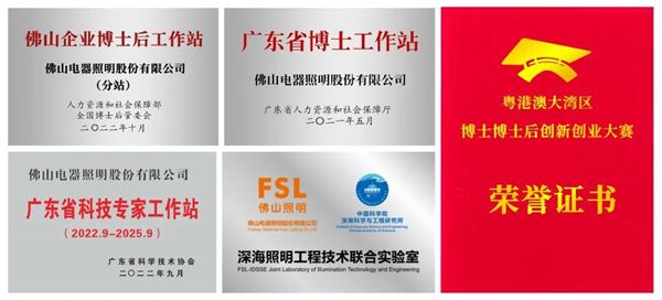 佛山照明部分科技创新平台及大赛获奖证书