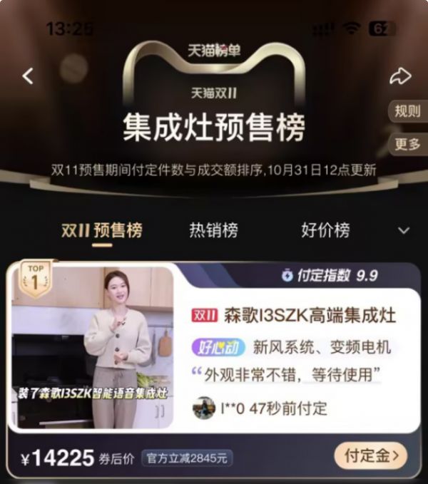 开门红再破1亿,森歌集成灶3大爆款线上销售持续领跑双11!