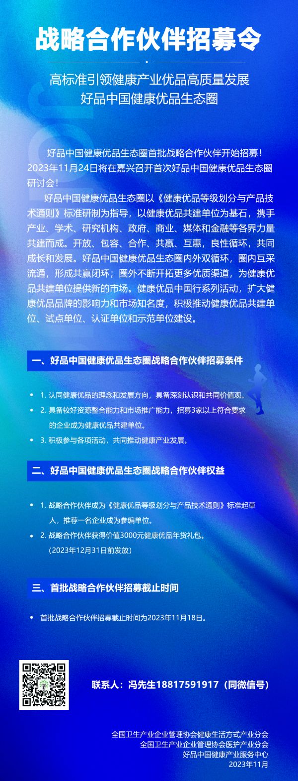 好品中国健康优品生态圈首批战略合作伙伴开始招募!2023年11月24日将在嘉兴召开首次好品中国健康优品生态圈研讨会!