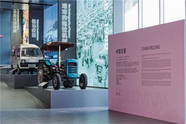 中国五菱馆主要分为前、中、后厅。前厅是一座“岁月博物馆”,通过文字、图片、实物和场景,带领观者穿越时光,沿着时间的脉络领略五菱的成长历程,阶梯式的展台则象征着五菱在岁月见证下,不断攀登新的高峰。