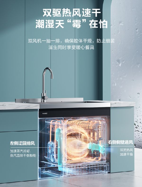 相比之下,集成水槽水槽则以相同的占地面积拥有更多的功能,在空间利用、功能集成上则交出了满分答卷——拿华帝集成水槽洗碗机TW50来说,它能满足餐前餐后洗沥切备收纳等多项需求,就不再需要单独购买水槽、洗碗机、消毒柜和碗篮啦!12套洗碗机满足家庭日常需求,消毒烘干排湿储存集于一体,餐后生活更便捷轻松!