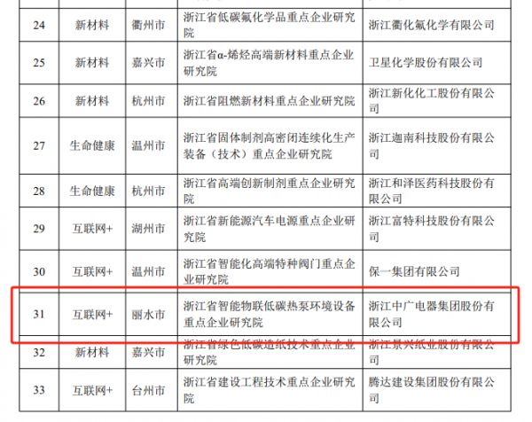 日前,浙江省科学技术厅公示了2023年拟认定省重点企业研究院名单。其中,浙江中广电器集团股份有限公司的“浙江省智能物联低碳热泵环境设备重点企业研究院”成功入选省重点企业研究院。