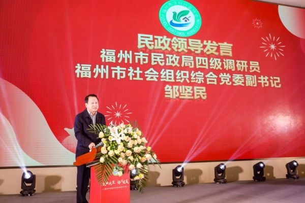 在晚宴环节中,福州市民政局四级调研员福州市社会组织综合党党委副书记:邹坚民书记亲自走上舞台,向会长陈家胜授予了协会牌匾,并为协会的未来发展指明了方向。陈家胜会长则亲自为各理事单位代表颁发了协会的授权牌,象征着大家共同携手,开启新的征程。