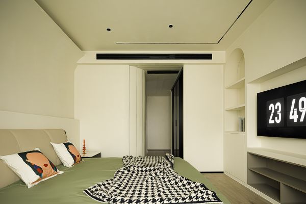 这套房屋的业主是一对年轻夫妻,他们对设计的接受度较高,喜欢简约侘寂风。基于此,我们对这一案子的风格定位是以简约为主,希望给居住者带来安静、自然、质朴的居住感受。同时我们将客餐厨打通,进行一体化设计,并优化各自的功能分区,在整体上打造一个通透明亮、温暖宜居的舒适空间。