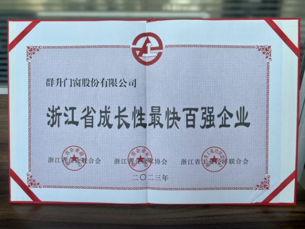 2023年“浙江省成长性最快百强企业”榜单公示,群升门窗跻身第15位
