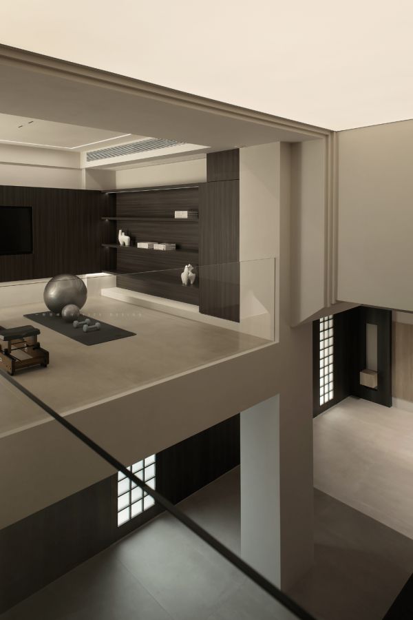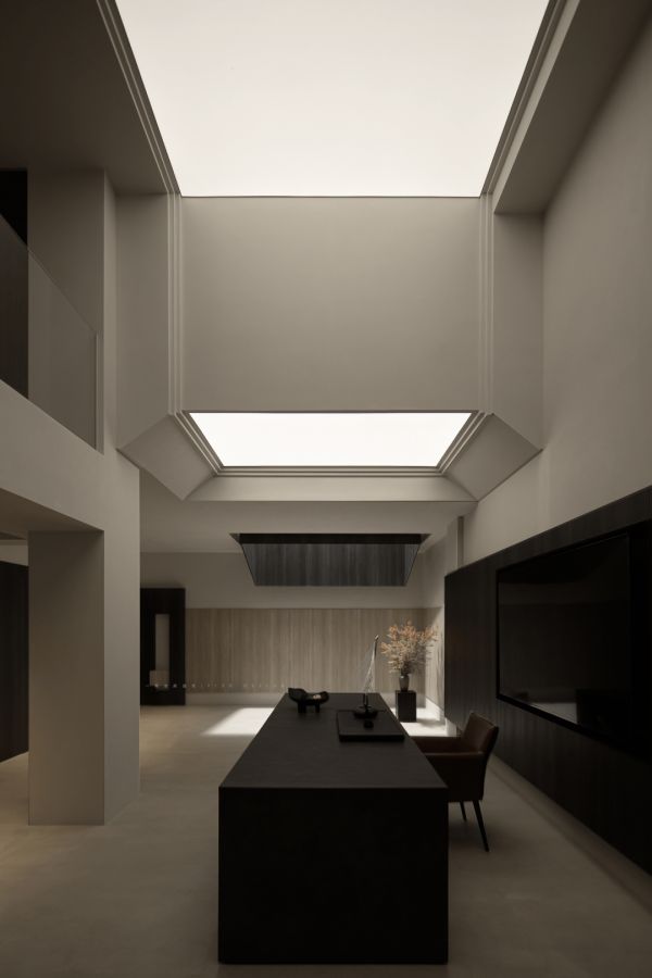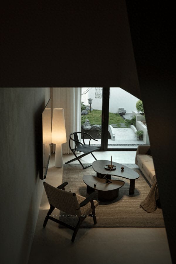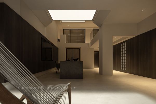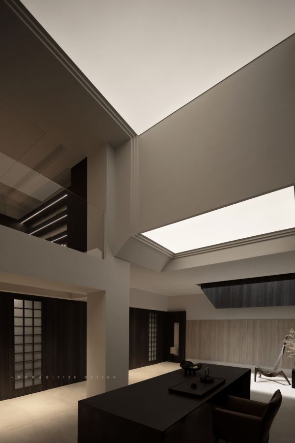 地下两层包含了休闲 娱乐 办公 禅修等功能,同时还兼顾着储物 洗衣等作用。整体设计简洁流畅有序,各功能区清晰明了。一方采光天井连接上下,空气能够自由的延展流动,同时将充足的自然光源引入室内。