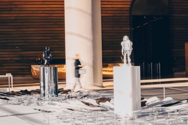 在启皓客厅独特的光影氛围中,艺术家白帆用77片不规则镜面和两座雕塑组成一组艺术装置,构筑了一个名为“镜中之外”的故事。