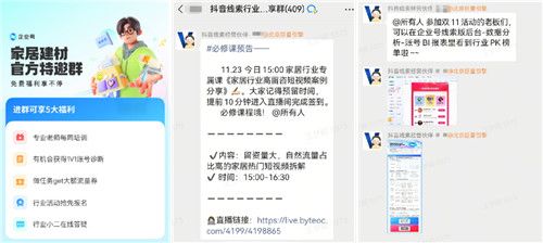 第一,【金牌厨柜】受邀后积极加入了“家居建材的官方特邀社群”,群里不但有定期的课程培训,还能获得有关平台新产品功能的通知和同行交流。