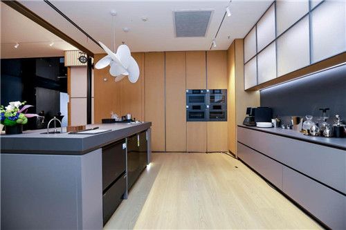 从一体化来看,德基卡萨帝全球艺术中心呈现了原创平嵌科技带来的家居空间艺术。不仅原创平嵌冰箱可以两侧零嵌、正面平嵌,烟机、洗碗机也可以“隐藏”于极简风格的橱柜中,带来浑然天成的一体化家居体验。