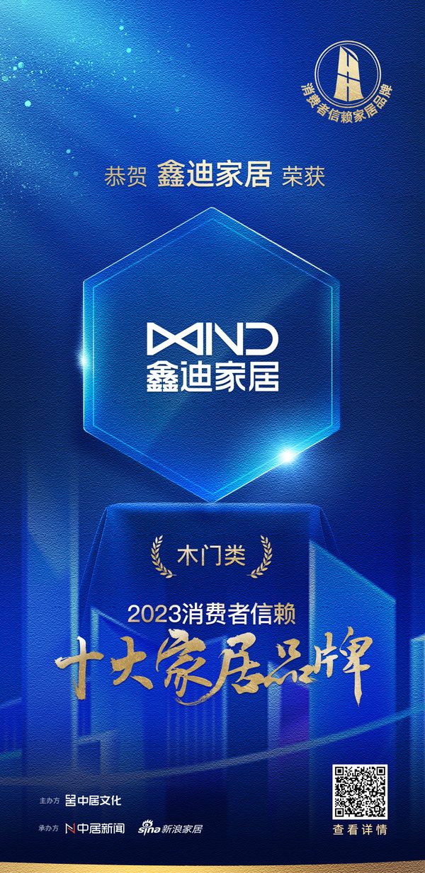 质行千里·品耀家居 | 鑫迪家居荣登「2023消费者信赖十大家居品牌」木门类榜单!