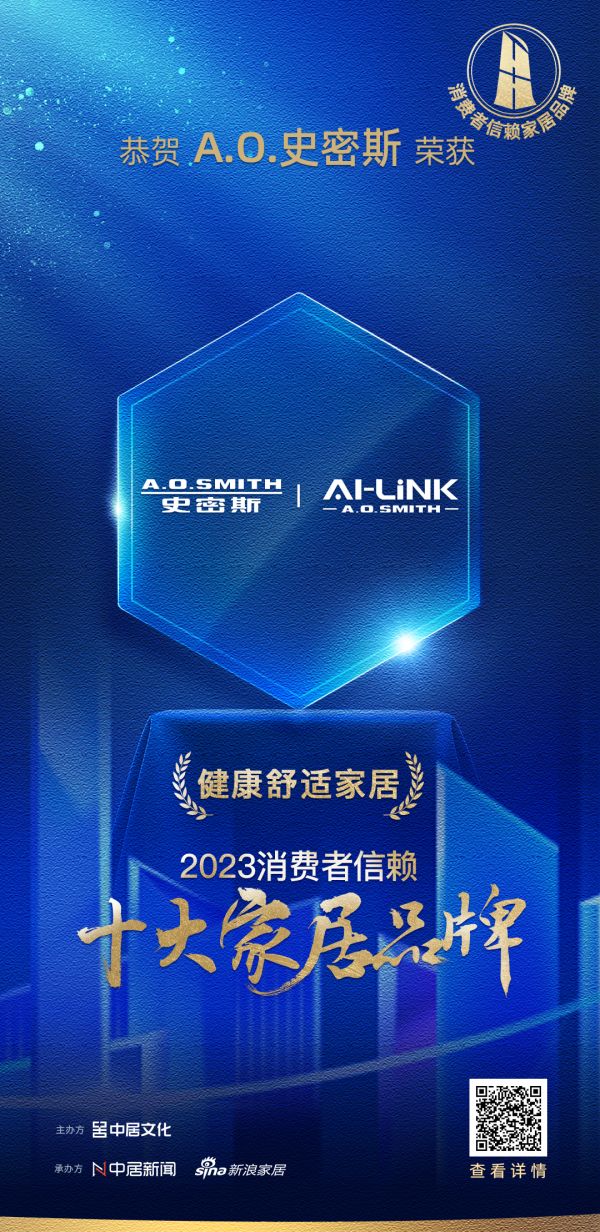 喜报!A.O.史密斯 荣膺2023消费者信赖十大健康舒适家居品牌!