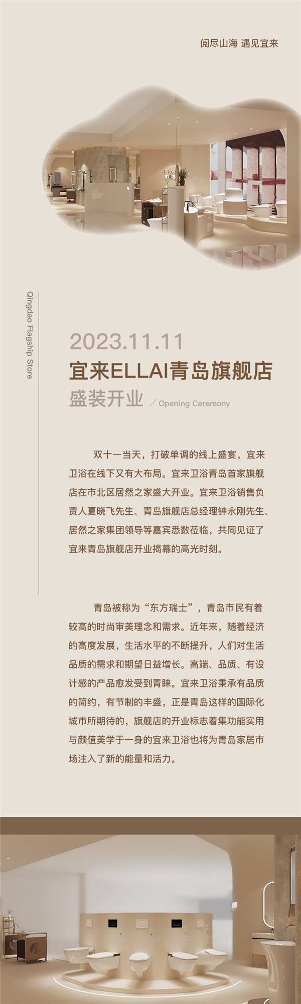 官宣 | 青岛首家宜来卫浴旗舰店开业啦!