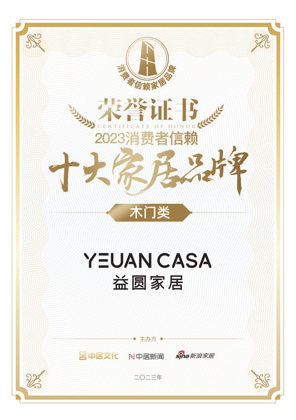 口碑见证品牌力量!益圆木门荣膺2023中国家居消费者口碑门类上榜品牌