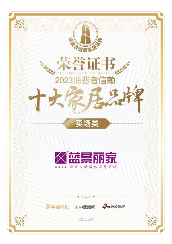 质行千里·品耀家居 | 蓝景丽家荣登「2023消费者信赖十大家居品牌」卖场类榜单!