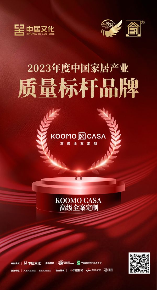金致奖 | KOOMO CASA 高级全案定制荣获「2023中国家居产业质量标杆品牌」
