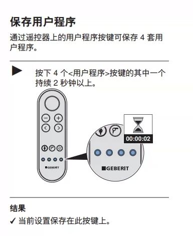 在此基础上,直观的可用性是这款智能马桶遥控器的一大特点,不仅所有输入都可以用一只手处理,还可以保留4种用户设置,“一键”直达舒适,年长者也可以快速上手。