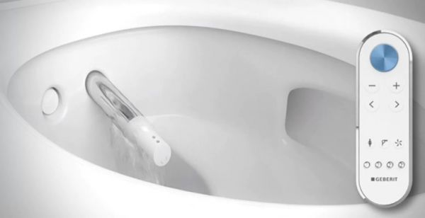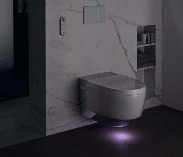 得益于接近传感器,吉博力Mera壁挂式智能马桶的坐圈会在使用者靠近时自动预热,并根据体感温度调节。
