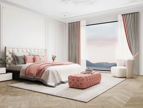 2024年度流行色“柔和桃”来了,美绮像设计时装一样设计窗帘