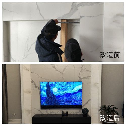 家住合肥的王先生就遇到了这类难题,他家的电视背景墙是不锈钢材质,由于没有预留隐藏线管的出口,需要在不锈钢背景墙上打孔安装,一般品牌方都表示工程难度大,无法完成。于是,他找到了卡萨帝工作人员,不仅上门勘测耐心讲解,还定制专属微改方案,将不锈钢薄板进行切割开孔。这样一来,电源线既可以从预留管里面穿过去实现无尾设计,还能将裸露在外的电源线隐藏,让用户不需要大改装修,就能一次性解决安装难题。