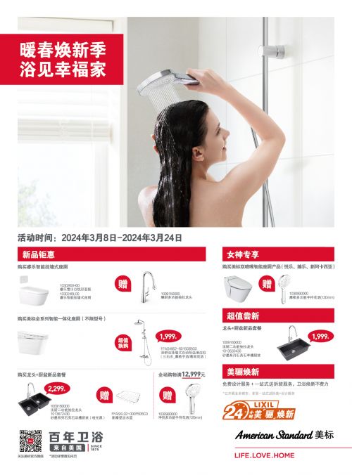 春意盎然,阳光正暖,早春的迎泽,温度节节回升。而随着早春的到来,百年卫浴品牌美标将于于2024年3月8日至3月24日在全国零售门店同步举办315促销活动,为消费者带来别开生面的家居体验,引领浪漫春日的购物狂潮。