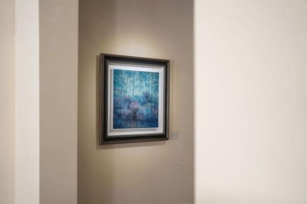 一幅幅色彩瑰丽透明的竹林山石油画,排布在“侗艺间”老洋房的3层空间里,沿马路大玻璃窗外的老房子、梧桐树和匆匆行人,与玻璃窗内的溪山竹影恰好构成一场跨时空的对话。