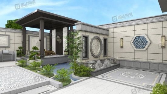 这款中式庭院别墅的设计更接近自然的环境,有助于人们减轻压力、放松心情、增强身心健康。在庭院中呼吸新鲜空气、接触大自然的元素,可以促进身心的放松和恢复,减少疲劳和焦虑。