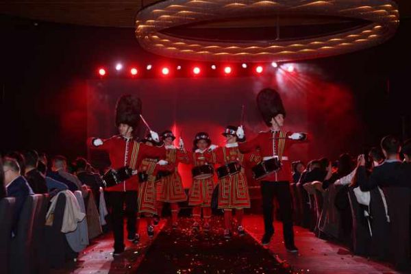 在品尝精致美馔的同时,宾客们还欣赏到三场精彩的娱乐表演。舞蹈表演《澳门欢迎您》活力四射,将宾客带往大三巴、议事亭前地等各个澳门地标。《绽放》的灵感来自澳门teamLab超自然空间的最新作品“漂浮的花园”:身着迷人兰花长裙的表演者惊喜现身,与此同时,古典弦乐器优美演绎现代名曲,配合澳门著名时装设计师Nuno Lopes的最新系列时装秀,共同展现金沙旅享将经典与创新糅合的深厚功力。压轴节目《皇家卫兵换岗》则重现极具英伦特色的仪式盛况,在披头士《Come together》的旋律中,身着苏格兰卫队、伦敦塔卫士及伦敦警员服饰的表演者们挥舞着英国国旗,为这个完美的夜晚画上了圆满的句号。