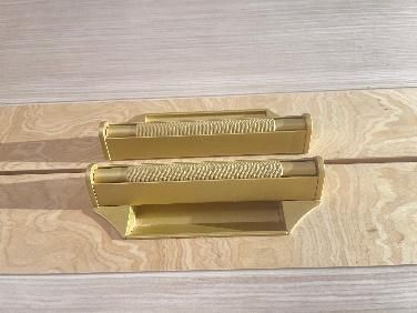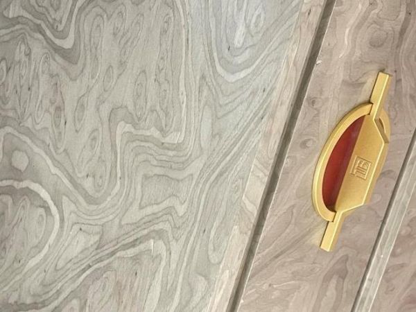 抽屉拉手造型灵感也取自古桥的水景映射同时搭配使用了企业IP符号的再创作; 门板拉手萃取了中国古建筑独有特色造型,演绎当下时尚东方意境。