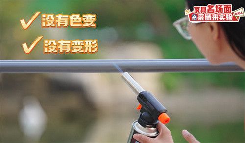为了解答李女士的疑惑,采销人员拿出喷枪,对准晾衣架的一个位置连续高温烘烤了十几秒,晾衣架无变色无损伤,极端实验证明,与飞机高铁同等材质的铝合金晾衣架,防锈耐晒的效果已达行业领先水平。