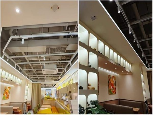 我们还根据厨房不同位置,选择了弹簧卡扣暗装、矿棉版2个款式的面板灯;选择不同款式的灯条、灯带,提升墙面的装饰氛围,给就餐过程创造愉悦感;同时我们为灯带配备了高品质LED电源,支持项目安全稳定运转。