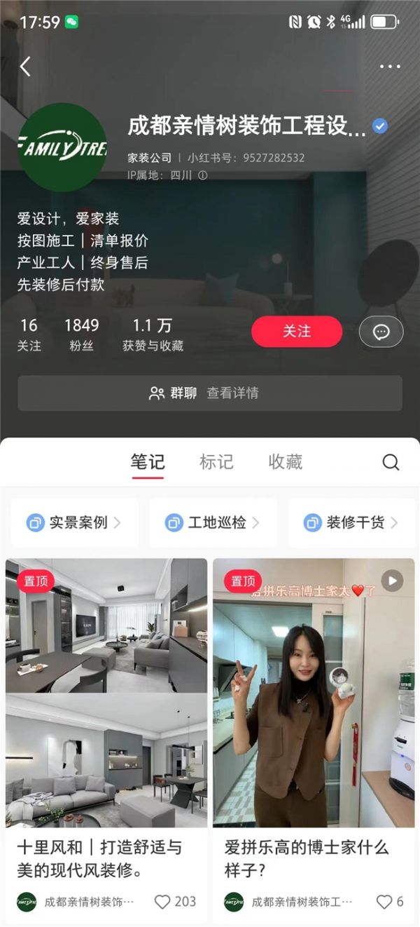 亲情树装饰围绕3D云设计的创新探索为基础,布局大众点评、住小帮、土巴兔、小红书等新媒体渠道,线上渠道获客成果颇丰,大众点评已跃升金牌装修店铺,官方抖音账号点赞量上万,如今企业近30%的订单都由线上平台产出。同时,借由线上平台短视频营销加消费者到店体验出图,真正形成了“线上线下”联动的全新获客体系。