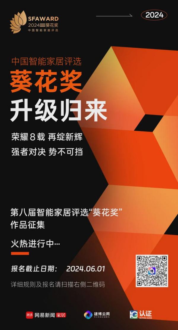 2024年第八届“葵花奖”智能家居评选已全面升级,从奖项设立到评选规则都做出了新的探索实践。