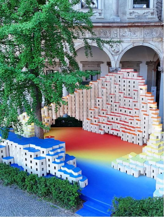 除了制造上的绿色化和节能化,Roca乐家还在各种场合以可视化的形式推广低碳环保理念。例如在今年举办的米兰设计周上,乐家联手Mario Cucinella Architects设计了一个独特的室外艺术装置,以电动隧道窑为模型,由1200个颜色独特的3D打印陶瓷块组成,体现了卫浴行业的绿色理念和脱碳原则,展示了这一突破性创新对环境的积极影响。