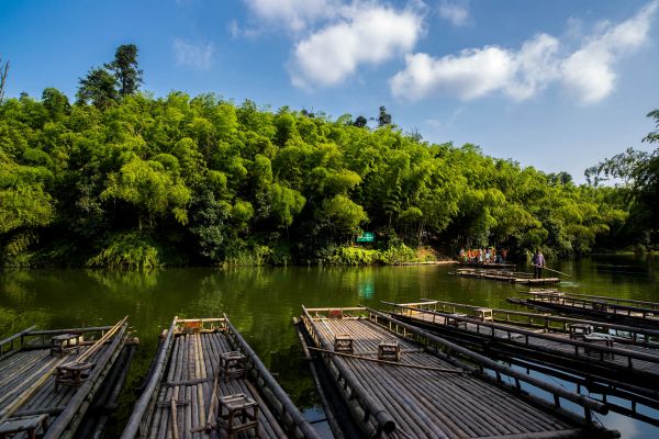 在这里,可欣赏翡翠长廊的秀美,可体会忘忧谷的静谧,可远眺在风潮中碧波澎湃的万顷翠竹,也可领略久负盛名的蜀山竹海云雾。